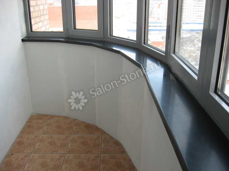 Длинный подоконник темного оттенка на балкон