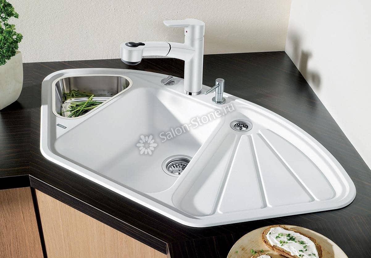 Угловая раковина Corian Glacier White